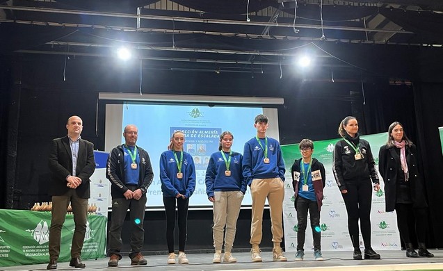 La Federación Andaluza de Montañismo ha otorgado en esta gala medalla a los miembros de la selección de escalada CADEBA, de la que forman parte los virgitanos Lidia Acién y Sito Martos.