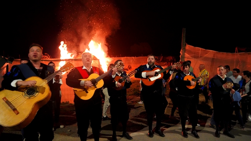 La Tuna Universitaria de Almería amenizó la noche en la que los vecinos se reunieron en torno a las distintas hogueras