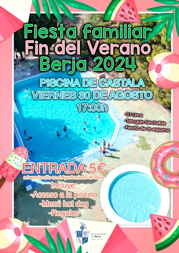 Se acerca el final del verano y el Ayuntamiento de Berja organiza una fiesta familiar para despedir la temporada en la piscina de Castala este viernes 30 de agosto a partir de las cinco de la tarde.