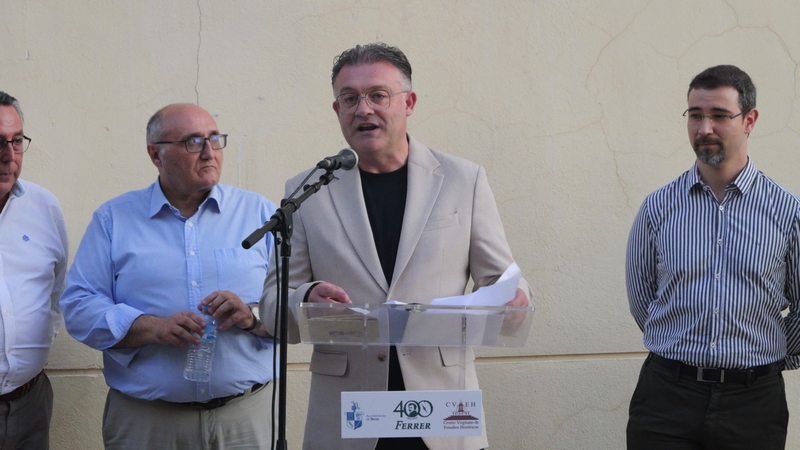 Posteriormente, los asistentes se trasladaron a la calle Mártires de la Alpujarra, en el lateral del edificio del Ayuntamiento, para la inauguración del relieve en mármol dedicado a Ferrer. La obra, realizada por el escultor Francisco Alias y que partió de un boceto realizado por el artista virgitano Miguel Carmona, fue presentada ante el público y delante del propio autor, que explicó los detalles de la pieza.