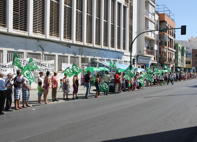 La Central Sindical Independiente y de Funcionarios, CSIF Almería, y la Asociación de Vecinos de Pescadería han protagonizado hoy una cadena humana reivindicativa para exigir la ejecución y rehabilitación de la Casa del Mar del barrio almeriense.