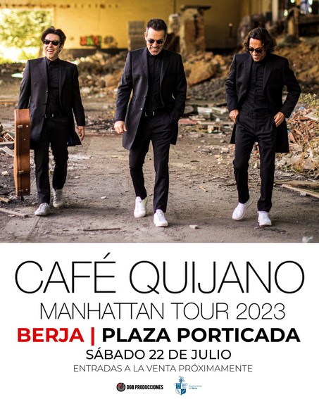 La gira Manhattan Tour 2023 del grupo Café Quijano tendrá un concierto el sábado 22 de julio en la Plaza Porticada de Berja dentro de la programación de los festivales de la Feria de Berja 2023 organizados por el consistorio virgitano.