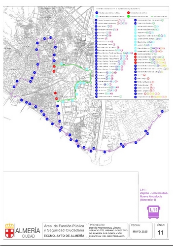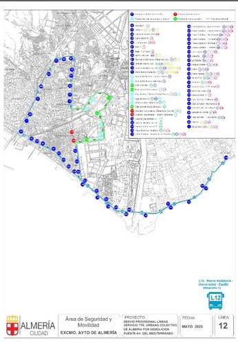 En el caso de los autobuses urbanos que conectan distintos puntos de la capital almeriense con la Universidad, existen importantes cuestiones a tener en cuenta en el inicio de este curso. Así, cuatro de las seis líneas que cubren el servicio de transporte público con el campus experimentan cambios en sus itinerarios y/o en sus paradas, derivados de las obras que se están desarrollando en la ciudad. En concreto, las líneas afectadas por modificaciones sustanciales son la 4, 11, 12 y 18, con cambios que consisten en: tramos de itinerario provisional, paradas de nueva creación, paradas existentes que modifican ubicación y paradas fuera de servicio (se adjuntan mapas con los cambios). Por su parte, las líneas 15 y 19 no han sido modificadas ni en frecuencia ni en recorrido.