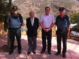 El subdelegado del Gobierno en Almería, Andrés García Lorca, y el Coronel de la Guardía Civil, Francisco Jiménez, acompañados por el Sargento de la Guardia Civil de Canjáyar, Juan Mañas y el alcalde de la localidad, Francisco Alonso, han realizado una visita a las instalaciones de la Casa Cuartel del municipio para mantener una reunión de trabajo en la que se trataron diversos asuntos relacionados con la seguridad ciudadana correspondientes a la demarcación de este Cuartel. Tras la reunión se desplazaron hasta la Barriada de Alcora para conocer de primera mano las necesidades en materia de seguridad ciudadana en esta zona.