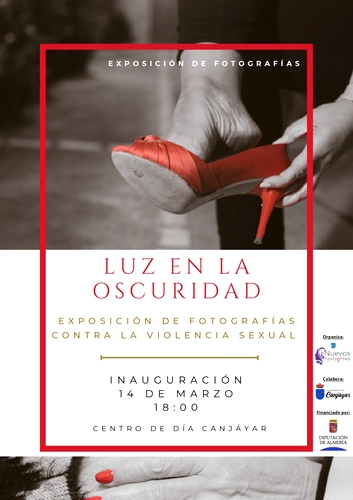 ‘Luz en la oscuridad’ es el título de la exposición fotográfica realizada por la Asociación de Mujeres Nuevos Horizontes de Canjáyar, que se inaugurará el próximo viernes 14 de marzo, a las 18:00 horas, en el Centro de Día y que cuenta con la colaboración del Ayuntamiento de Canjáyar y la Diputación Provincial de Almería.