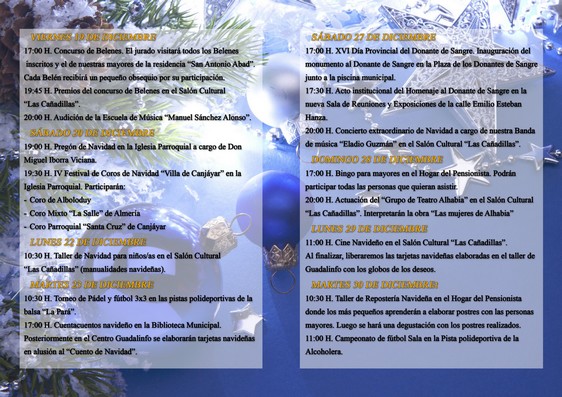 CANJÁYAR.- Más de una veintena de actividades integran la Navidad 2014