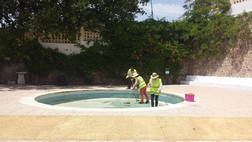 Estos trabajadores también han procedido al vaciado de la piscina municipal para poder acometer las labores de limpieza y desinfección del vaso, la revisión general de los motores, circuitos e instalaciones así como el arreglo de los jardines que la rodean.