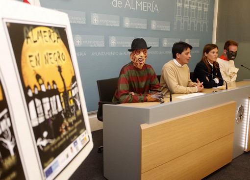 La edil ha explicado los detalles de esta jornada que contará con “visitas guiadas, teatralizadas, espectáculos visuales, actividades infantiles, música, monólogos, baile, talleres…un amplio repertorio de actividades, dirigidas a todos los públicos” que tendrán como eje vertebrador el Paseo de Almería y como principales escenarios las plazas Vieja, Pablo Cazard, Educador y San Pedro. En estos puntos y en sus calles limítrofes podrá uno toparse con personajes siniestros, como Freddy Krueger o Hannibal Lecter, que hoy han acompañado a los concejales en su rueda de prensa, y quienes han anunciando una terrorífica noche que tendrá su punto fuerte en el “Pasaje del Terror”, que se creará en torno a las calles San Francisco de Asís, Concepción Arenal, Plaza Flores o la calle Tiendas. “Un lugar no acto para cardiacos donde nadie está a salvo de llevarse un buen susto”, como ha declarado el mismísimo Lecter ante los medios.