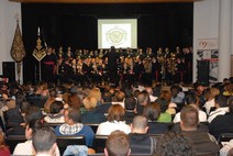 Ante un público entregado y que abarrotaba la EMMA, 114 músicos de la Banda de Cornetas y Tambores Nuestro Padre Jesús Cautivo de Málaga estrenando uniformidad, que acompañan musicalmente al Misterio de la Santa Cena en su procesionar por las vetustas callejuelas almerienses desde 2011, atronaron con sus notas el auditorio. Estrenaron la marcha “En Cuerpo y Sangre” (compuesta por Javier Anaya) dedicada al Señor de la Cena y continuaron con “Leyendas de un Barrio” (de Javier Anaya), “Tras tus Pasos” (Carlos Alberto Soto), “El Elegido” (Alejandro Gómez Rodríguez), “Tu Cáliz sobre mi Costal” (de José López) y “Este es mi Cuerpo”, cuyo autor es Joaquín Gómez. Hubo intercambio de partituras y cuadros por parte del recién nombrado Hermano Mayor, Manuel Flores con los Directores y se cerró el concierto dos horas después en espera de oir de nuevo las marchas procesionales el Domingo de Ramos.