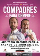 Alrededor de diez años han pasado ya desde que ‘Rafa’ y ‘Fali’, los personajes a los que dan vida Alfonso Sánchez y Alberto López, arreglaran el mundo desde una mesa en una terraza de bar. Conversaciones a un ritmo vertiginoso, opiniones que van cambiando a lo largo del desarrollo del diálogo y, al final, como denominador común, muchas risas por el camino. ‘Compadres Para Siempre’ es el nuevo espectáculo teatral de esta pareja de cómicos y que lo representarán sobre las tablas del Auditorio Municipal Maestro Padilla el próximo sábado, 29 de abril, a partir de las 21 horas, en una de las citas con el humor más destacadas de la ‘Primavera Cultural’ organizada por el Área de Cultura, Educación y Tradiciones del Ayuntamiento de Almería.