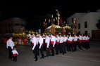 • Como siempre, la procesión estaba abierta por el paso de San Juan. Junto a él, en el desfile procesional, sus nazareos vestidos de túnica blanca, capa roja y capirote rojo, y sus costaleros, vestidos con pantalón negro, camisa blanca, corbata negra y faja roja.