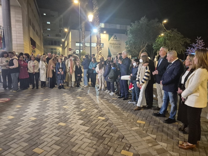 El acto de la iluminación, que se realiza desde hace cinco años, ha contado con la presencia del delegado territorial de Salud y Consumo, Juan de la Cruz Belmonte, el concejal de Cultura, Diego Cruz, y la concejala de Presidencia, Planificación y Proyectos Europeos, Amalia Martín.