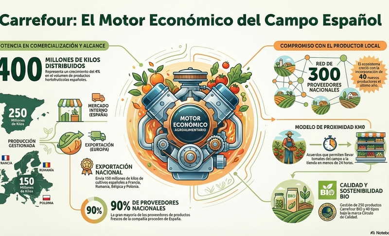 El apoyo a la economía local es un compromiso constante para Carrefour: el 90% de los productos frescos que comercializa proceden de España y en cuanto a los proveedores de fruta y verdura, ya posee una red de 300 proveedores de todo el territorio español. Solo el pasado año se incorporaron 40 nuevos productores a su circuito.