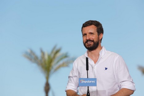 Casado, en Almería, reprocha a Sánchez que no tenga “nada que opinar” sobre Podemos y le exige cesar a Iglesias