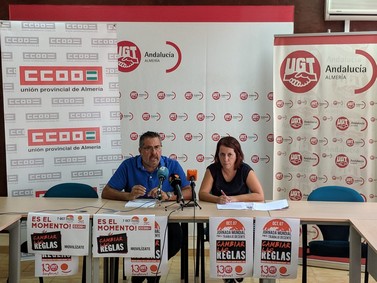 La Secretaria General de UGT Almería, Carmen Vidal, apunta que el 93% de los contratos que se realizan en nuestra provincia son de carácter precario y temporal. También señala que el objetivo de ambos sindicatos es cambiar las reglas de juego, por lo que es necesaria la intervención del Gobierno Central, derogando la reforma laboral y anteponiendo a las personas, teniendo además en cuenta que menos del 45% de los contratos creados tras la reforma laboral de 2012 son indefinidos, situándose la tasa de temporalidad del 26,8%, habiendo crecido 5 puntos desde 2013. Junto a estas actuaciones, es necesario reforzar los controles efectivos a las empresas para evitar el fraude masivo en la contratación, abusando en gran medida de los contratos de días y semanas, siendo un 25% de ellos menor a siete días de duración.