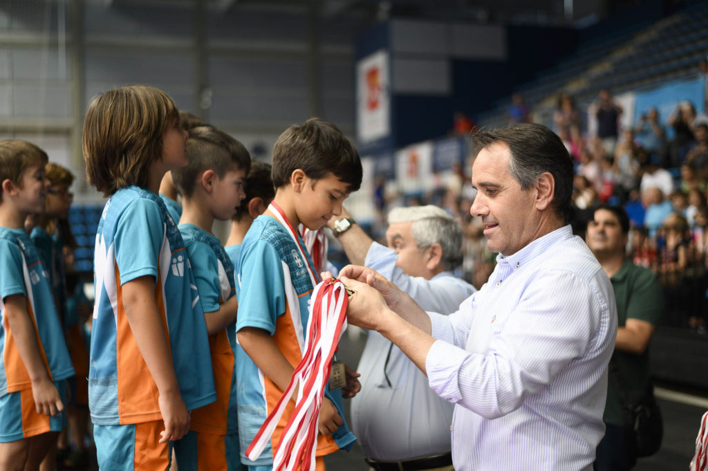 Los Juegos Deportivos Municipales (JDM) se han convertido en una fiesta del deporte, además de una convivencia entre escolares que generan valores positivos en su día a día. Una vez más, el Palacio de los Juegos Mediterráneos ha sido testigo de la unión tan fuerte entre padres, niños y entrenadores. Esta vez ha sucedido en el balonmano con la clausura de los JDM en la que se han entregado los premios por el trabajo en la competición.