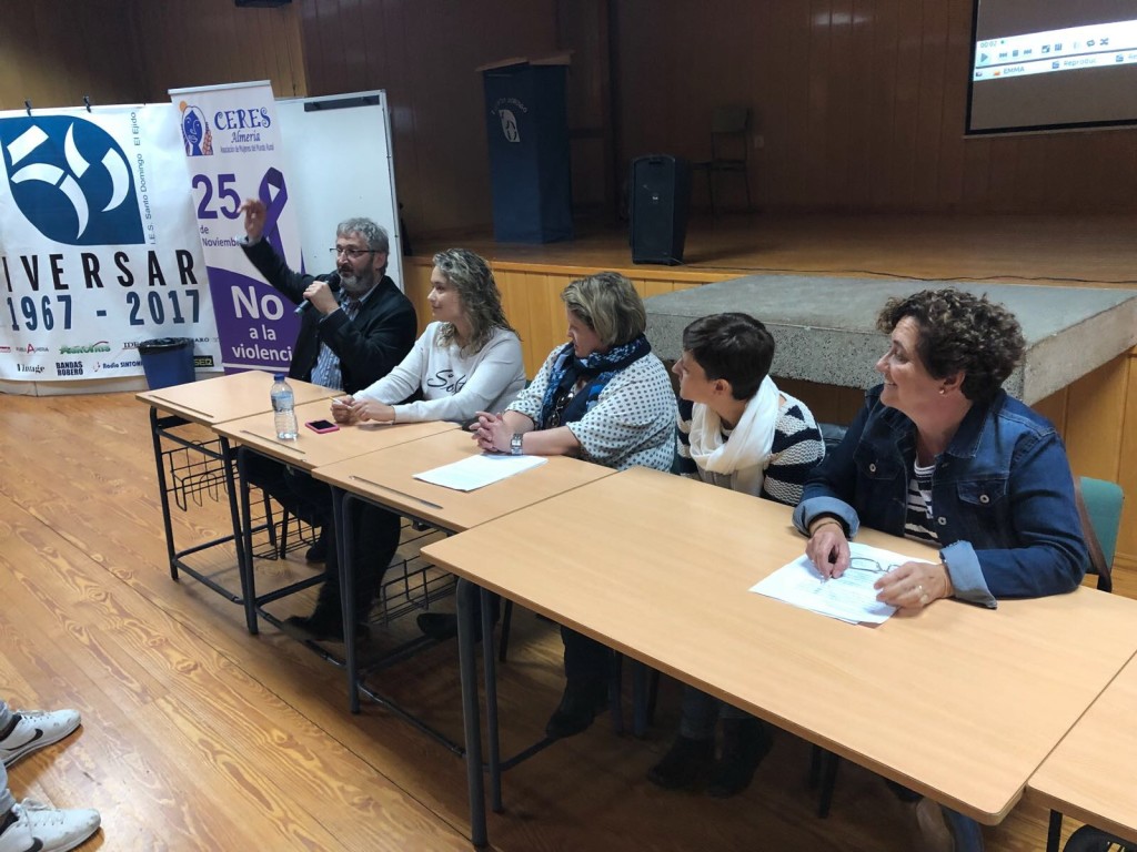 En los coloquios en los que han participado Dori Luque, Presidenta de CERES Almería; Puri Cobo y Mª Carmen Ramón, miembros de la Junta Directiva de CERES Almería; los actores Mª Carmen Mayor, Jesús Herrera; y Rosa Maldonado, periodista de COAG Almería, han abogado por el respeto a las personas independientemente de su género, así como la necesidad de educar en valores tanto en la casa como en los propios centros educativos. “La erradicación de la violencia de género empieza en vosotros, los jóvenes. No podéis ser sujetos pasivos ante un acto de violencia aunque suceda a vuestro alrededor. Debéis ayudar, en la medida de vuestras posibilidades, a la persona afectada a pedir ayuda a personal especializado como las personas que hay en los centros municipales de la mujer. En CERES Almería también tenemos personal cualificado para atender a mujeres que tengan problemas de violencia machista. La información que nos trasladen será totalmente confidencial y recibirán asesoramiento sobre qué caminos seguir para conseguir salir de ese infierno”, ha asegurado Luque quien ha valorado el proyecto como gratificante.