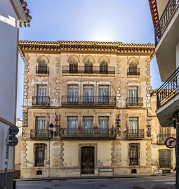 Fotos: 1. Casa Modernista en Vélez Rubio (Foto Pako Manzano) 2. Casa Manchón en Vélez Rubio (Foto Encarni Navarro); 3. Casa de los Arcos en Vélez Blanco (Foto Cintia Romero) 4. Escudo Casa de los Arcos en Vélez Blanco (Foto Cintia Romero).