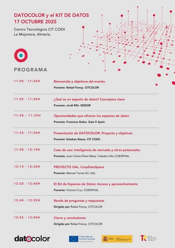 El programa se completará con casos de uso de los espacios de datos como Inteligencia de mercado o el CropDataSpace de la Universidad de Almería, así como el acceso y aprovechamiento de los mismos en el caso de DATOCOLOR.