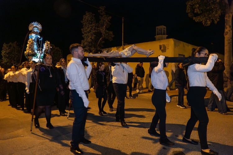 También da inicio con la procesión de Nuestro Padre Jesús de la Agonia y Nuestra Señora de Los Dolores (Mayordomía Virgen María y Parroquia San Teresa de Jesús de El Solanillo , Roquetas de Mar )