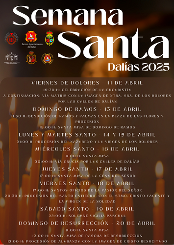 Durante toda la semana se desarrollará un extenso programa de actos que incluye, entre otros el Vía Crucis del Miércoles Santo, que recorrerá las calles de Dalías en silencio y meditación. En el Jueves Santo la parroquia Santa María de Ambrox celebrará la Misa de la Santa Cena del Señor, y a las 21:00 horas tendrá lugar la procesión de la Hermandad de Ntro. Padre Jesús Nazareno y Ntra. Sra. de los Dolores, conocida como “Los Moraos”, con las imágenes de sus Titulares. Al día siguiente, en los Santos Oficios del Viernes Santo tendrá lugar la Adoración de la Santa Cruz organizada por la Hermandad del Cristo de la Luz, y por la tarde, a las 20:30 horas se iniciará la Procesión del Santo Sepulcro con el Stmo. Cristo Yacente y la Virgen de la Soledad, Cofradía, conocida como “Los Negros”, y en la noche del Sábado Santo se celebrará la Solemne Vigilia Pascual.