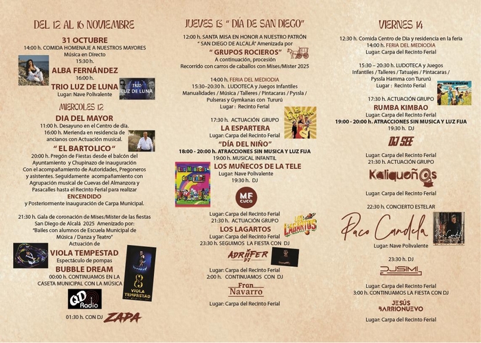Estas celebraciones, dedicadas al patrón San Diego de Alcalá, marcan un hito especial en el calendario festivo: son la última gran feria de la comarca y son aclamadas por su ambiente inigualable y su carácter entrañable, atrayendo a visitantes que buscan cerrar el ‘año festivo’ con una de las celebraciones más queridas de la zona.
