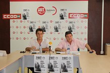 El secretario general de UGT Almería, Félix López y el secretario general de CCOO Almería, Juan Pallarés, han informado de los detalles de la concentración que ambas organizaciones sindicales realizarán el próximo lunes, 7 de octubre, con motivo de la celebración la Jornada Mundial por el Trabajo Decente, que este año se desarrollará bajo el lema ‘Empleo Decente. Pensiones Dignas. Servicios Públicos Universales’.