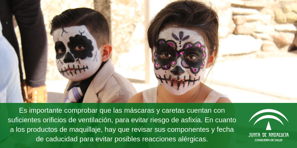 En el caso de las máscaras, es importante comprobar que cuentan con suficientes orificios de ventilación, para evitar riesgo de asfixia. En cuanto a los productos de maquillaje, hay que revisar detenidamente sus componentes, así como la fecha de caducidad antes de utilizarlos, para evitar posibles reacciones alérgicas. Por otra parte, hay que deshacerse de los plásticos y envoltorios de estos productos, ya que pueden resultar peligrosos: los duros pueden provocar cortes y los blandos pueden causar asfixia.