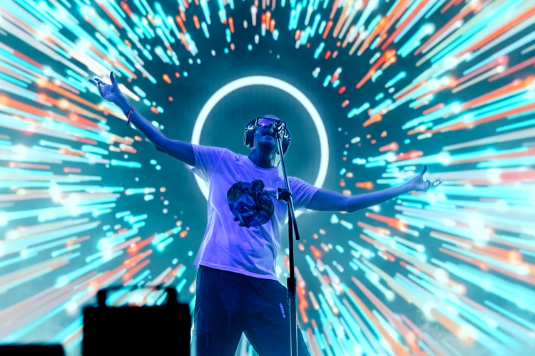 El mismo escenario recibiría después de Amaral a La Casa Azul, otro clásico de los últimos veinticinco años con su música híbrida entre el indie y la electrónica. Liderados por un siempre dinámico Guille Milkyway, las alas del synthpop se extendieron con ritmos juguetones y amables desde los iniciales “No hay futuro” o “No más Myolastan”, pasando por “Hasta perder el control” o la ‘speedica’ “Ataraxia”. Clara evocación constante al mundo de Daft Punk, como “El momento” o la multidireccional y más reciente “Prometo no olvidar”.
