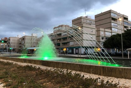 Las fuentes que se teñirán de color verde cada noche, a partir de las 20,00 horas, serán la de la rotonda de calle Santiago, Plaza Virgen del Mar, 102 Pueblos y Obelisco (estas dos últimas a partir del lunes).