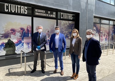 La residencia, ubicada junto al parque Gloria Fuertes de la capital almeriense, ha sido visitada este lunes por la delegada de la Junta en Almería, Maribel Sánchez, así como por el delegado territorial de Salud y Familias, Juan de la Cruz Belmonte, y el rector de la UAL, Carmelo Rodríguez, quienes han comprobado el estado de las instalaciones.