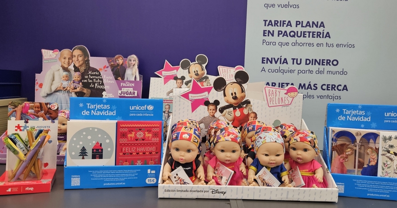 La empresa postal continúa su colaboración con UNICEF, con quien mantiene una alianza estratégica desde hace más de 45 años, comercializando a través de las oficinas sus tarjetas de felicitación y calendarios. Las oficinas de Correos se han convertido en uno de los principales canales de distribución de sus tradicionales tarjetas en todo el territorio nacional. Ya se han puesto a la venta más de 40.000 estuches de christmas y 1.300 calendarios de este organismo de Naciones Unidades dedicado a la defensa y la protección de los derechos de la infancia. Con la recaudación será posible financiar alimentos, vacunas y otras necesidades de los niños y niñas en todo el mundo.