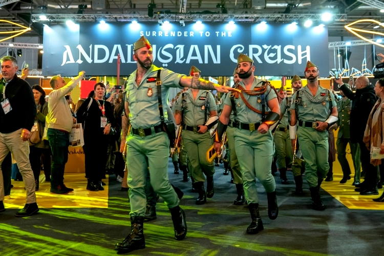 La música de la Banda de Guerra del Tercer Tercio Don Juan de Austria centró toda la atención del Pabellón 5 de IFEMA, en FITUR, Madrid, para la puesta de largo de ‘La Desértica 2025’ que se disputará el 18 de octubre. El espacio central de Turismo Andaluz acogió el acto principal de ‘Costa de Almería’ con la presentación de la séptima edición de la mítica prueba de ultrafondo, una de las más duras y de mayor participación del país, que cada año convierte al destino almeriense en el mejor enclave del mundo para disfrutar del deporte al aire libre en espectaculares entornos naturales.