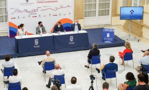 El Patio de Luces de la Diputación ha acogido la presentación oficial de las etapas almerienses de La Vuelta 21, que pasarán por 17 municipios, con la participación del presidente de la Institución Provincial y del director general de la carrera.