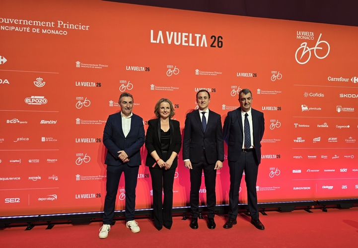 La diputada provincial de Deporte, Vida Saludable y Juventud, María Luisa Cruz, y el alcalde de Vera, Alfonso García, han asistido a la presentación de La Vuelta 2026, que ha tenido lugar esta tarde en el Monte-Carlo Spotting Club Salle des Étoiles, en Mónaco.