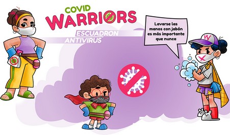 Esta iniciativa se está materializando a través de un amplio abanicos de propuestas como un cómic-protocolo de recomendaciones que persigue trasladar a las personas acogidas, especialmente a los y las menores, el protocolo de seguridad ante el coronavirus de una forma sencilla y atractiva. Los personajes del equipo de COVID Warriors se muestran en diferentes posiciones, con mensajes claros y directos sobre las recomendaciones a seguir (higiene, hábitos, etc.). La idea es desarrollar diferentes cómics en formato A4 horizontal, los cuales serán impresos en los centros y facilitados a las personas acogidas para que los cuelguen en un lugar visible de sus apartamentos o habitaciones.