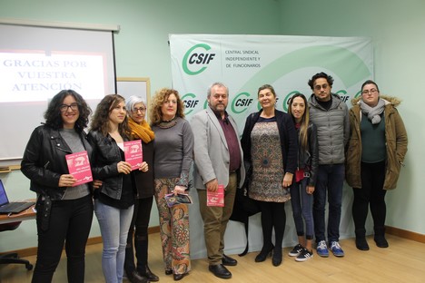 La Central Sindical Independiente y de Funcionarios, CSIF Almería, conmemoró este miércoles, adelantándose un día en el calendario, el Día Internacional de la Mujer, con una jornada lúdico reivindicativa cuyo eje central fue la charla coloquio ‘Brecha salarial, conciliación y empoderamiento’ que corrió a cargo del alumnado del Ciclo de Técnico Superior de Promoción de Igualdad de Género del IES Alhadra.