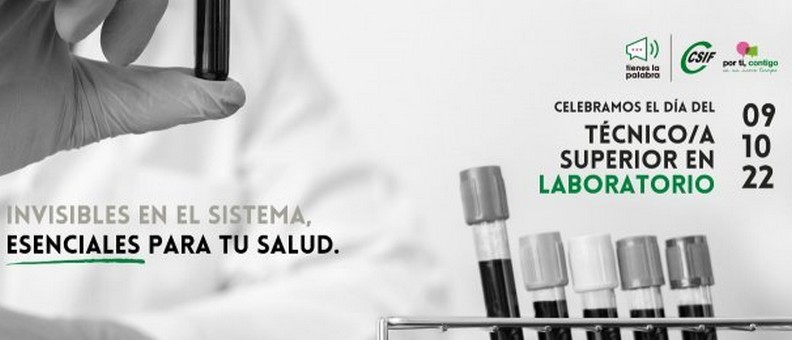 Con motivo de la celebración el 9 de octubre del Día del Técnico Superior en Laboratorio Clínico y Biomédico, CSIF Sanidad Andalucía ha demandado además para este colectivo, formado por más de 3.000 profesionales en nuestra comunidad autónoma, más de 400 en la provincia de Almería, una adecuada dotación de personal, la implantación real y efectiva de la figura del coordinador de técnicos y su clasificación dentro del grupo B.