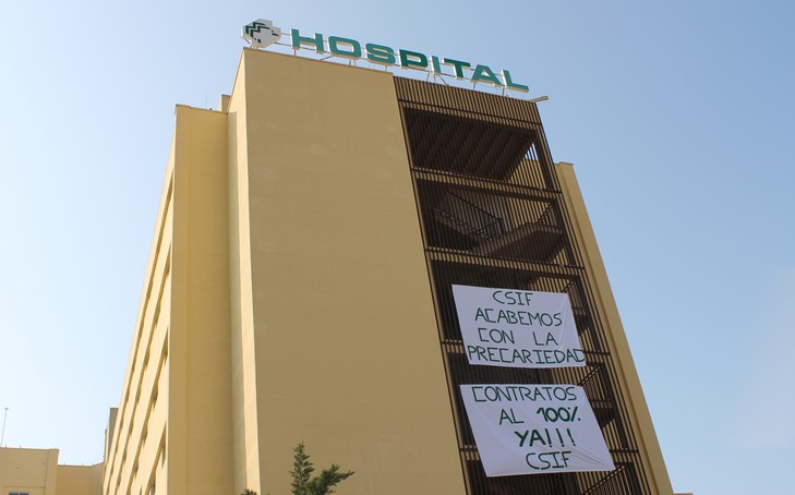 CSIF reivindica en Torrecárdenas los contratos al 100% con una gran pancarta