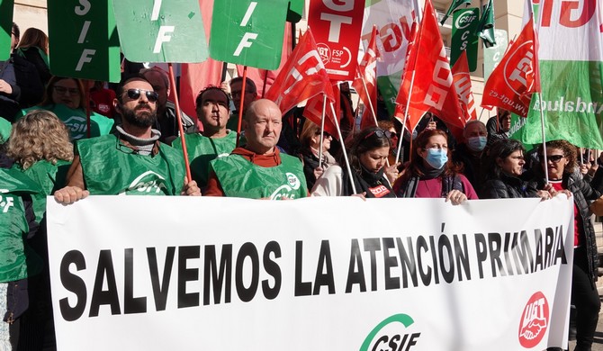 Bajo el lema ‘Salvemos la Atención Primaria’, las organizaciones sindicales han protestado por la falta de propuestas, transparencia y diálogo de la Administración para dar solución al colapso, por déficit de personal en este nivel asistencial, que deriva a su vez en problemas en los servicios de urgencia, tanto en Primaria como en los hospitales.
