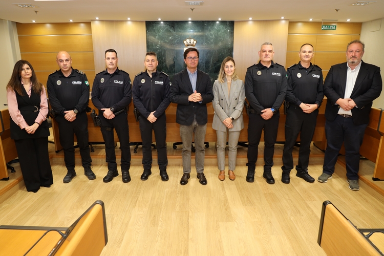 El alcalde, Francisco Góngora, en presencia del intendente de la Policía Local, Marco Muñoz, y el edil de Personal y Régimen Interior, José Francisco Rivera, ha felicitado a los cuatro nuevos oficiales y les ha agradecido “el trabajo que venís desempeñando desde hace mucho tiempo”.