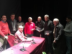 En las fotos, el autor aparece junto al concejal de Cultura y Turismo de Cuevas del Almanzora, Indalecio Modesto Alonso, el presentador del acto Pedro Perales Larios y los aficionados que asistieron al acto en la firma de libros.