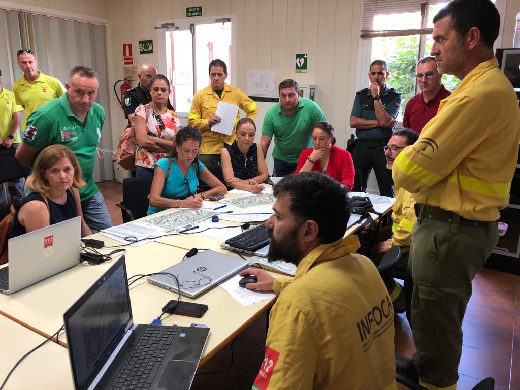 La consejera de Agricultura, Ganadería, Pesca y Desarrollo Sostenible, Carmen Crespo, se ha desplazado hasta el Cedefo de Alhama, donde se ha constituido el Puesto de Mando Avanzado (PMA) para la coordinación de todas las acciones y punto de encuentro y reunión. Ha estado acompañada por la De- legada del Gobierno en la provincia, Maribel Sánchez, y ambas han conocido de primera mano la situación actual del fuego y las actuaciones llevadas a cabo.