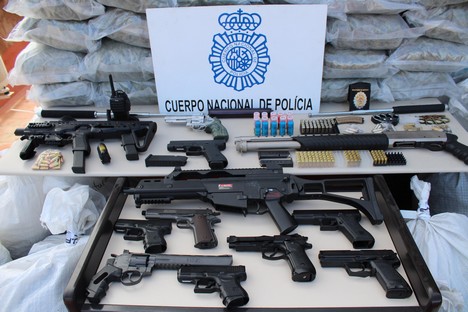 De la práctica de los registros, fueron intervenidos 130 kilos de marihuana, 9 vehículos de alta gama -uno de los cuales era blindado y alojaba un escondite para ocultar un arma de fuego y munición-, 13 armas de fuego de distinto calibre con su correspondiente munición, un silenciador, 9.000 euros en efectivo, uniformidad de Policía Local, equipos de transmisión y 4 máquinas envasadoras al vacío, al igual que gran cantidad de material y útiles para el cultivo y envasado de marihuana.