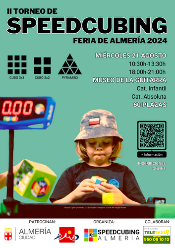 El próximo miércoles 21 de agosto, el Museo de la Guitarra de Almería se convertirá en el epicentro de la velocidad y la destreza mental con la celebración del “II Torneo de Speedcubing Feria de Almería 2024”. Este evento, que forma de las actividades culturales y deportivas incluidas en programa oficial de la Feria de Almería, promete ser una jornada llena de emoción y desafíos para los jóvenes aficionados al speedcubing; práctica que consiste en resolver el cubo de Rubik o alguna de sus variantes en el menor tiempo posible. Con 60 plazas disponbles, el torneo oferta las modalidades infantil y absoluto, permitiendo la participación de competidores de todas las edades y niveles de habilidad. Además, se competirá en las categorías de cubo 2×2, cubo 3×3 y Pyraminx, lo que brindará a los participantes la oportunidad de demostrar su rapidez y precisión en diferentes variedades del speedcubing. El objetivo principal de este torneo, comenta Miguel Angel Galdeano, presidente de Speedcubing Almeria, “consiste en fomentar la práctica y competición en el Speedcubing entre los jóvenes. El año pasado fue todo un éxito de participación, completandose las plazas disponibles con participantes locales llegados desde diferentes puntos de la provincia y veraneantes foráneos que disfrutaban de nuestra feria de Almería. Dado que es una actividad con un atractivo especial, en un marco como el Museo de la Guitarra, estamos convencidos que habrá de nuevo una participación masiva. En la edición pasada, la joven almeriense Mª Ángeles Rubí se convertía en la primera campeona del Torneo de Feria al resolver el cubo 3×3 en un tiempo de 12,24 segundos. Este evento no solo busca coronar a los más rápidos en resolver estos complejos rompecabezas, sino también fomentar el espíritu de superación y buen ambiente entre los participantes. Será, sin duda, una excelente ocasión para disfrutar de una actividad lúdica y educativa en un entorno único como es el Museo de la Guitarra.