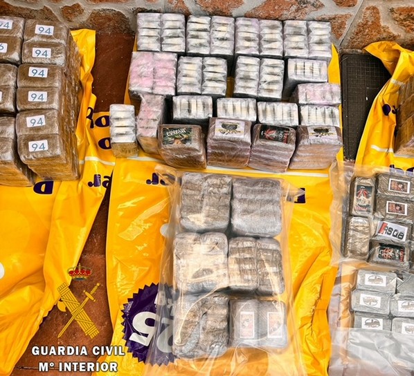 Ante las sospechas, se requirió la intervención del can ‘Dino’, especialista en la detección de drogas perteneciente al servicio cinológico de la Comandancia de Almería, el cual marca sin dudar como positiva la existencia de droga en los sacos. Al abrirlos para inspeccionar el interior, se localizan más de 100 kilos de hachís.