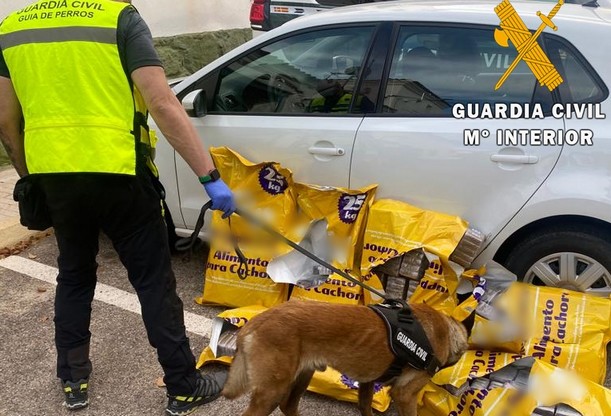 Fue durante un control preventivo cuando los agentes detuvieron a un conductor para que pasara a la zona de control y mostrara el interior de su vehículo, en el que transporta seis sacos de comida para perros. Durante la exploración, los agentes advirtieron al tacto que el contenido de los paquetes no se correspondía con granos de pienso.