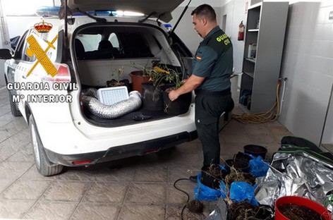Además, los agentes localizaron una decena de plantas de marihuana así como utensilios y efectos para maximizar el rendimiento de las plantaciones de marihuana.