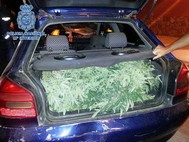 La Policía Nacional ha intervenido 6.400 gramos de marihuana y 63 plantas en una actuación que se ha saldado con cinco detenidos y que se inició después de que un patrulla interceptase un vehículo en cuyo maletero hallaron droga que acababa de ser robada en un cortijo junto al perro pastor alemán que guardaba la finca.