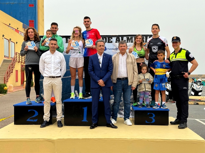 Más de 400 personas, entre atletas federados y aficionados, han disputado la prueba deportiva han participado en la prueba deportiva organizada por el Club Aqueatacamos con el patrocinio y colaboración de la Autoridad Portuaria de Almería (APA), potenciando la relación puerto-ciudad. El concejal de Ciudad Activa, Movilidad Urbana y Deporte, Antonio Jesús Casimiro, ha sido el encargado de dar el pistoletazo de salida en el Muelle de Levante en unos días en que la ciudad vive la I Semana del Deporte en Almería. El director de la APA, José Manuel Sánchez del Águila; el jefe de Área de Planificación, Antonio Bayo; el jefe de Seguridad, Manuel Serrano; y el jefe de la Policía Portuaria, José Miguel López, han sido los encargados de entregar los galardones a los ganadores.